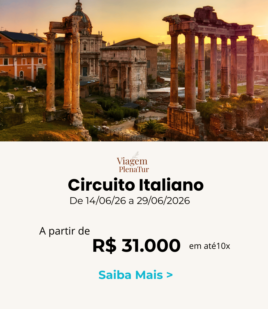 Milão, Gênova, Cinque Terre, Luca, Pisa, Florença, San Gimignano, Siena, Roma, Nápoles, Ilha de Capri, Sorrento, Costa Amalfitana, Pompéia, Assis, Veneza, Pádua, Verona, Lago de Garda - Grupo Especial Viagem Plena Tur – De 14/06 a 29/06/2026