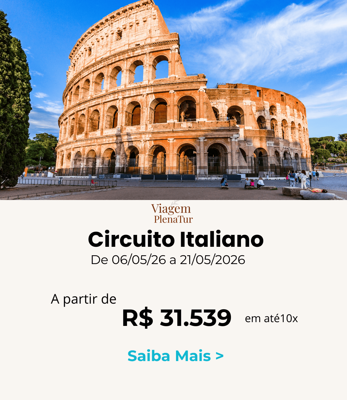 Fiz várias viagens com Viagem Plena Tur. Tudo perfeito bem organizado sem nenhum furo. Hotéis de excelente qualidade. Pessoal totalmente disponível. Assistência impecável.