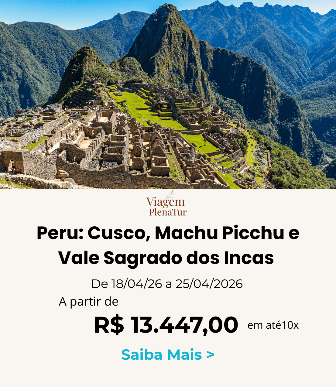 MACHU PICCHU, VALE SAGRADO, CUSCO, LIMA Grupo Especial Viagem Plena Tur – De 18/04 a 25/04/2026